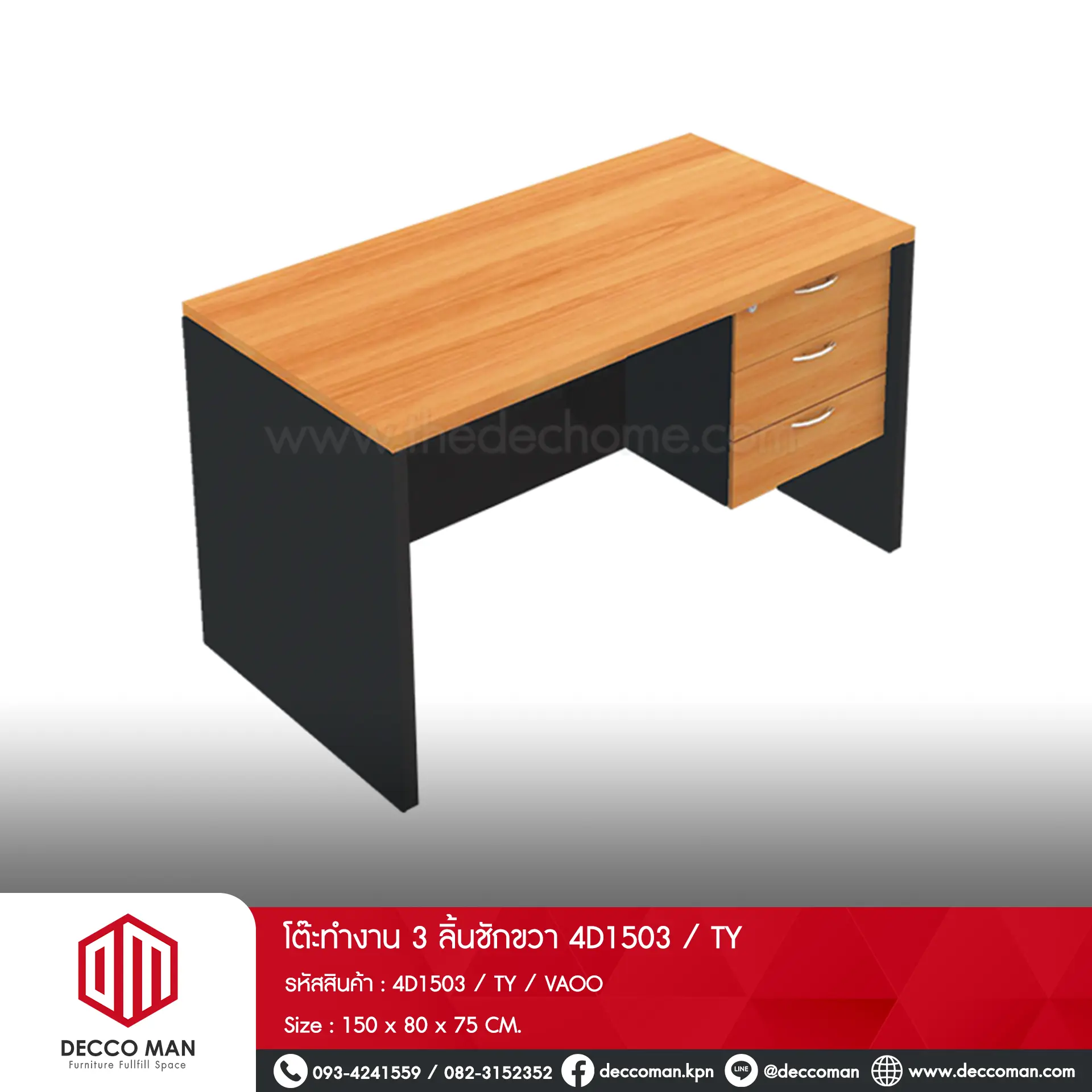 โต๊ะทำงาน 3 ลิ้นชักขวา 4D1503 / TY