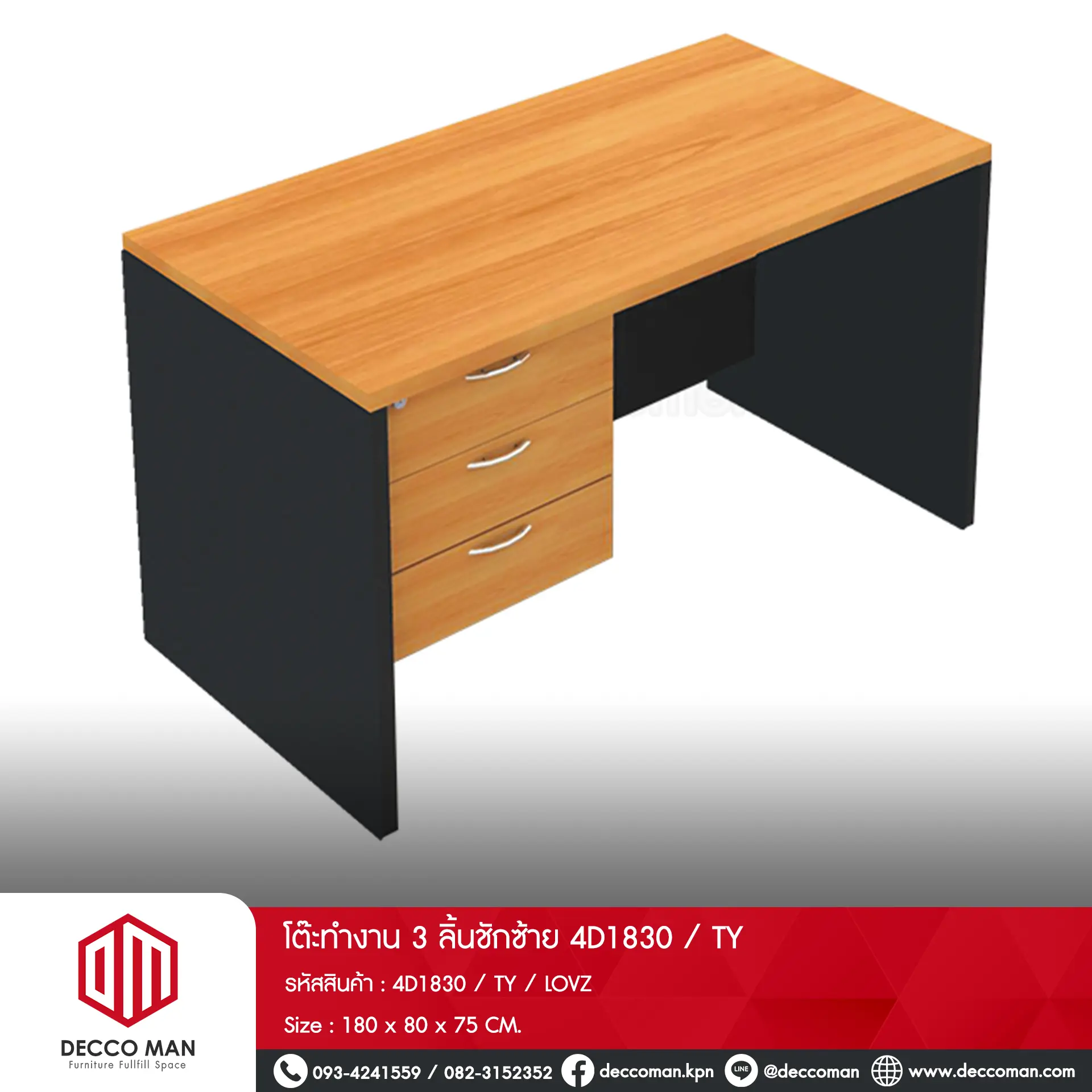 โต๊ะทำงาน 3 ลิ้นชักซ้าย 4D1830 / TY